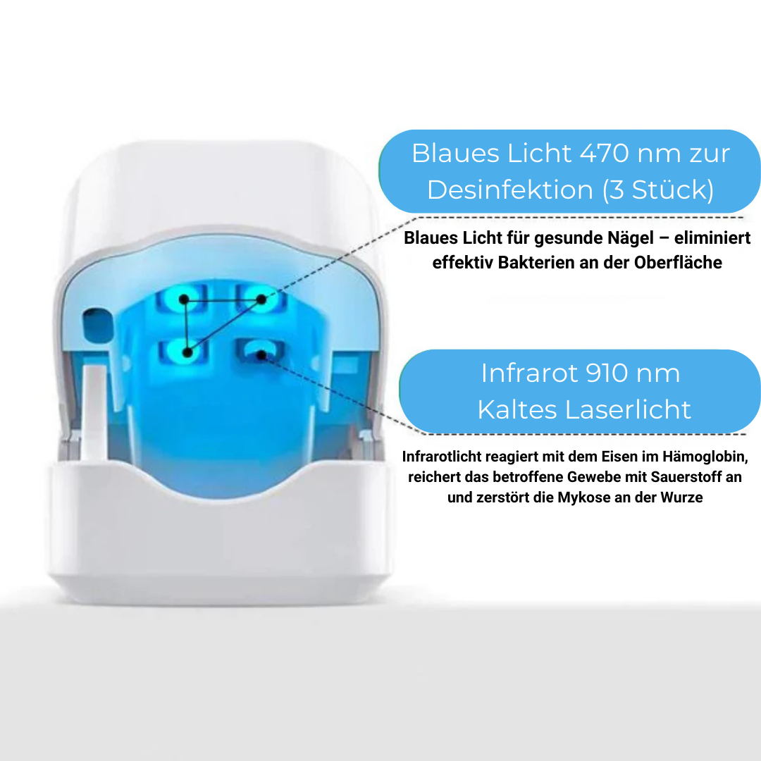 Ein Gerät, das in Zusammenarbeit mit Gesundheitsexperten entwickelt wurde, um die Kraft von LED-Licht zu nutzen und Nagelpilz gezielt an der Wurzel zu bekämpfen – dauerhaft und bereits nach wenigen Wochen sichtbar wirksam.